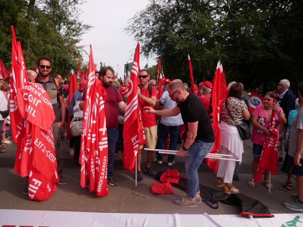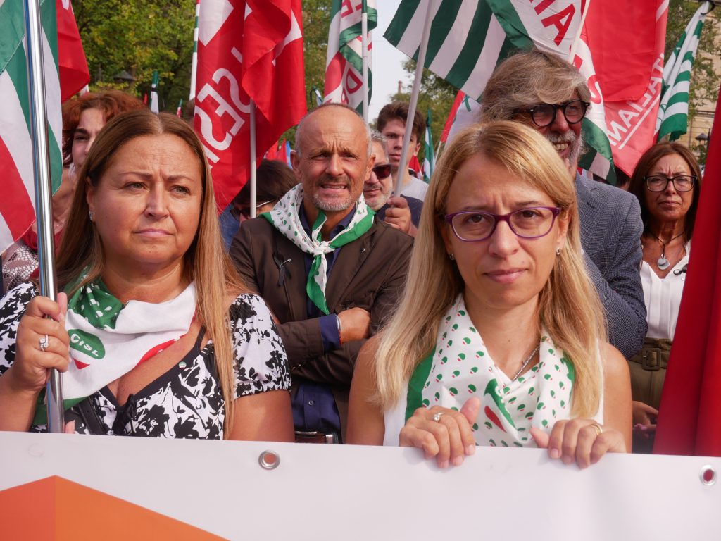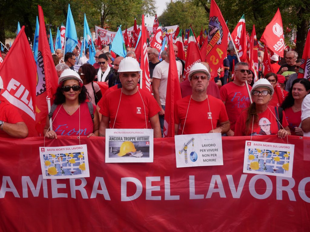 Zitti di fronte ai cinque morti di Brandizzo (presenti oggi anche alcuni tra i parente delle vittime); zitti di fronte alla strage di persone, mentre sono intente al lavoro (Landini richiamerà, come si può sentire nel nostro audiovideo, i numeri impressionanti in questi giorni spesso riecheggiati: una strage); zitti rispetto ad una ulteriore estensione di “piani” se l’analisi vuole andare oltre il pur drammatico impatto della realtà che si presenta e ripresenta, quasi a dire che sì, è vero, la realtà è ciò che accade, mentre noi siamo intenti a pensare come cambiarla.