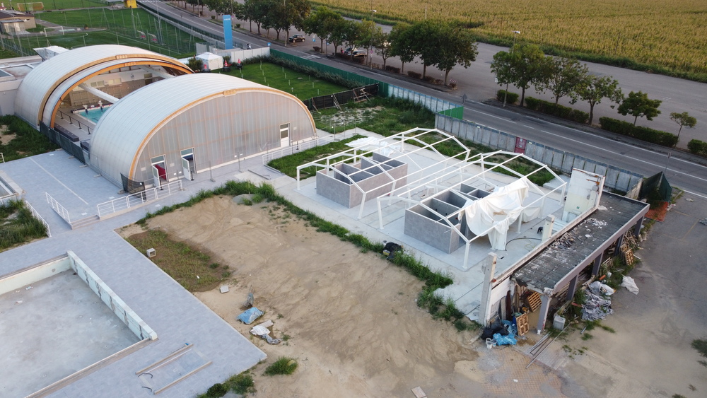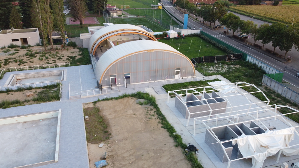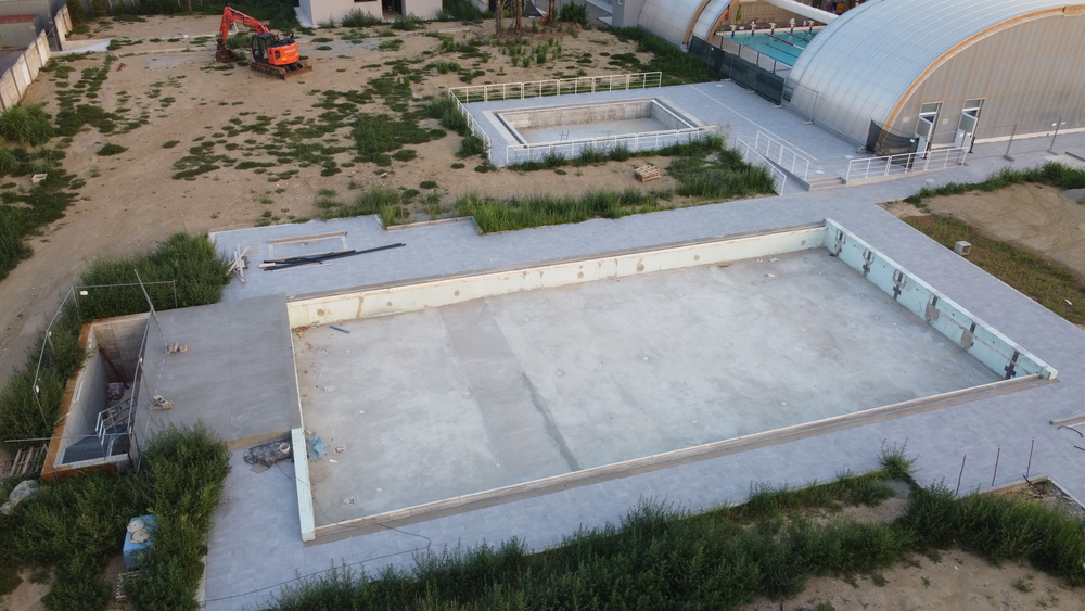 Si presenta così, prima delle vacanze (11 agosto) il cantiere della “nuova” piscina all’aperto, attigua al Coperchio che ha coperto la precedente piscina all’aperto ad otto corsie.