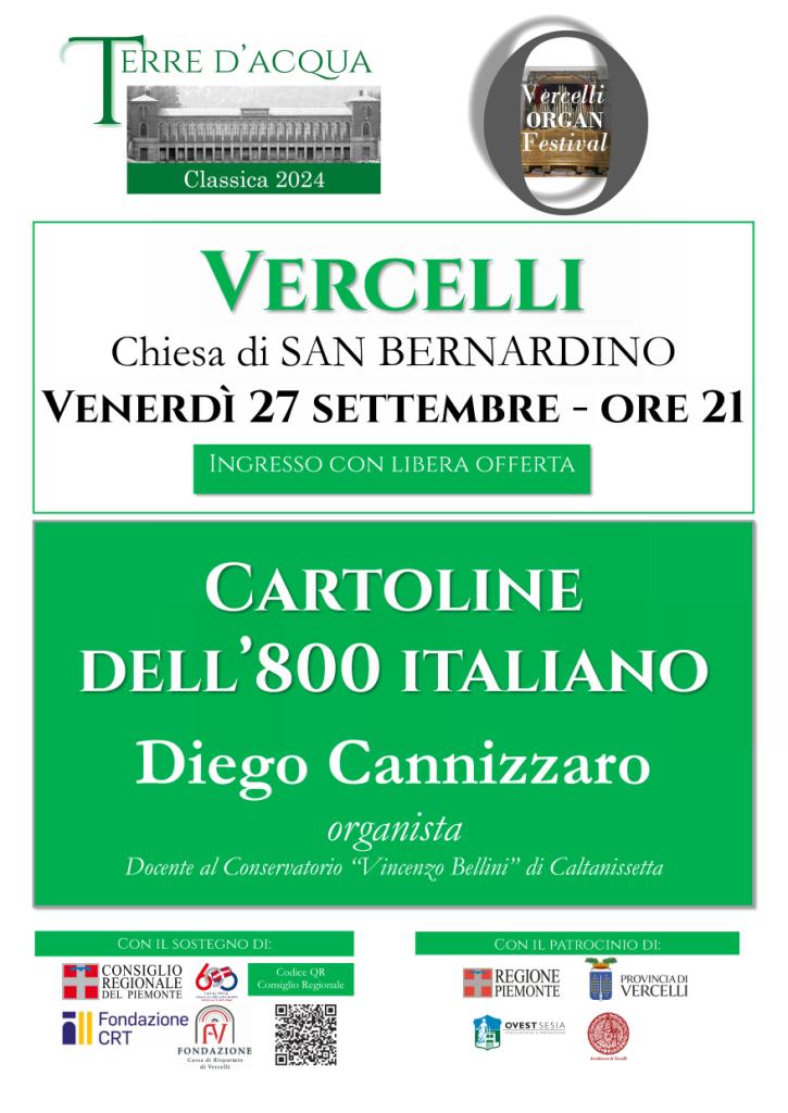 Terre d’Acqua Classica 2024 ha il sostegno del Consiglio Regionale del Piemonte (Bando Partecipate), della Fondazione CRT (Bando Not&Sipari) e Fondazione Cassa di Risparmio di Vercelli (Bando Valore alla Cultura) con il patrocinio della Regione Piemonte, Provincia di Vercelli e Consorzio Irriguo Ovest Sesia in collaborazione con l’Arcidiocesi di Vercelli.