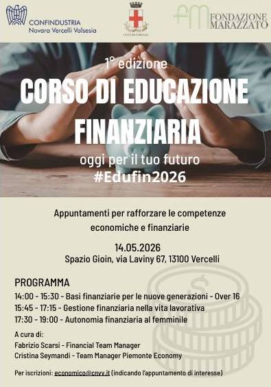 VERCELLI - Prima edizione del “Corso di educazione finanziaria” organizzato da CNVV e Fondazione Marazzato, con il patrocinio del Comune