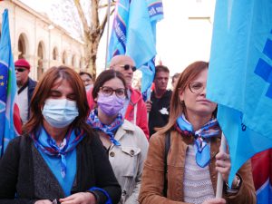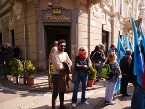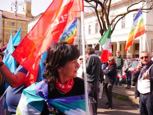 In città la manifestazione è persino partita con mezz’ora di anticipo sulla tabella di marcia. Alle 10, dunque, ritrovo “al solito posto”, davanti al Bar Principe e subito si sfila in corteo verso Piazza Municipio dove, ovviamente, si arriva prima e si finisce prima.