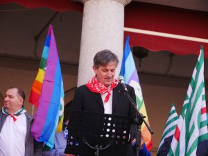 Ne parlano – dopo l’introduzione, a nome dei Sindacati Confederali, di Carlo Rivellino della Cisl – sia l’oratore della giornata, il Segretario regionale Uil Feneal, Giuseppe Manta (integrale, tra poche righe, in forma scritta, il suo intervento), sia, in conclusione, Valter Bossoni, Segretario della Camera del Lavoro di Vercelli.