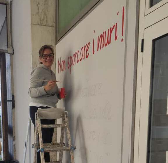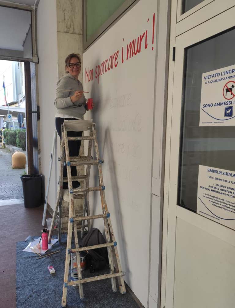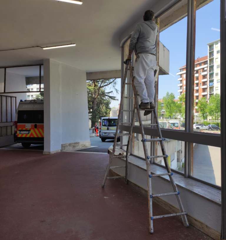 La scritta è stata realizzata grazie alla disponibilità e alla capacità artistica della dipendente ASL Daniela Sozzani, in servizio da gennaio 2026 all’Ufficio Acquisti, che si è messa volontariamente a disposizione dopo la proposta di una collega. Diplomata al Liceo artistico di Novara, Sozzani dipinge per passione utilizzando principalmente pennello e colori ad acqua; con questa tecnica ha già realizzato decorazioni in locali pubblici e abitazioni private.