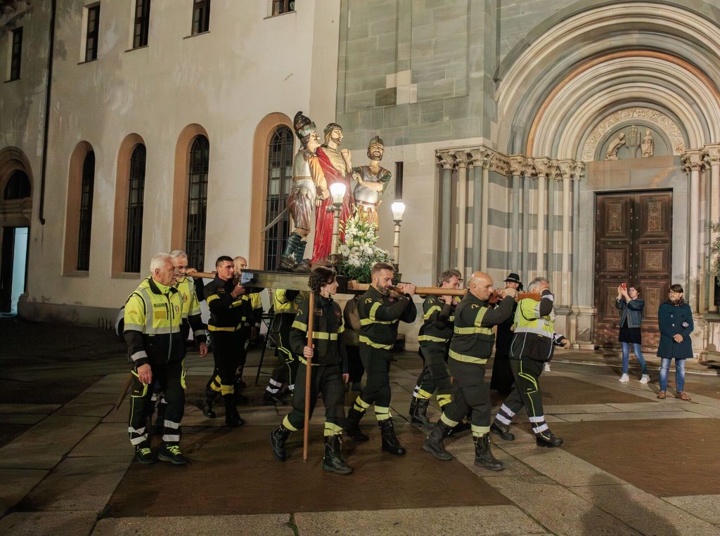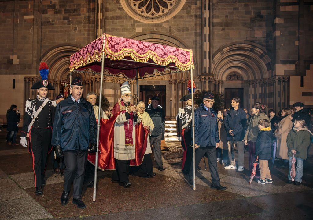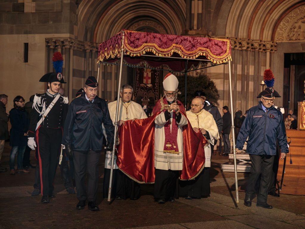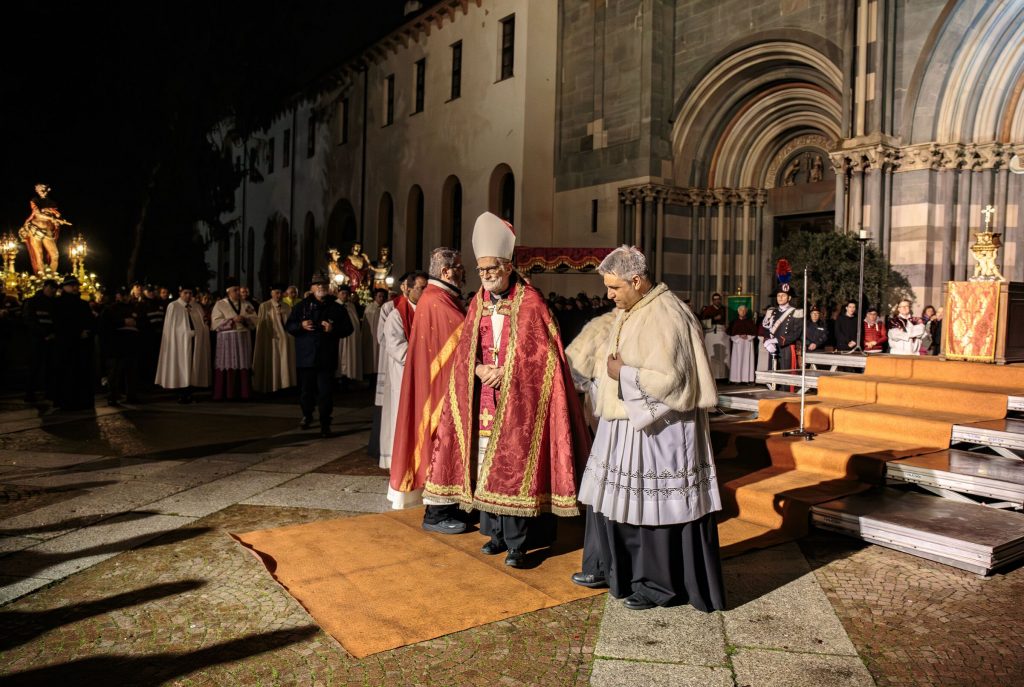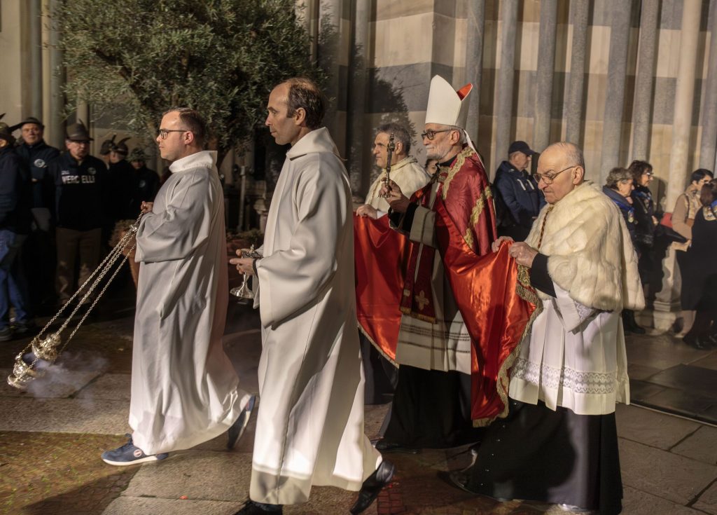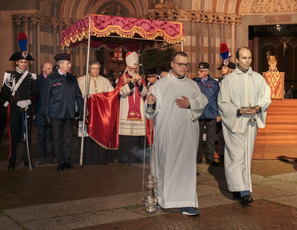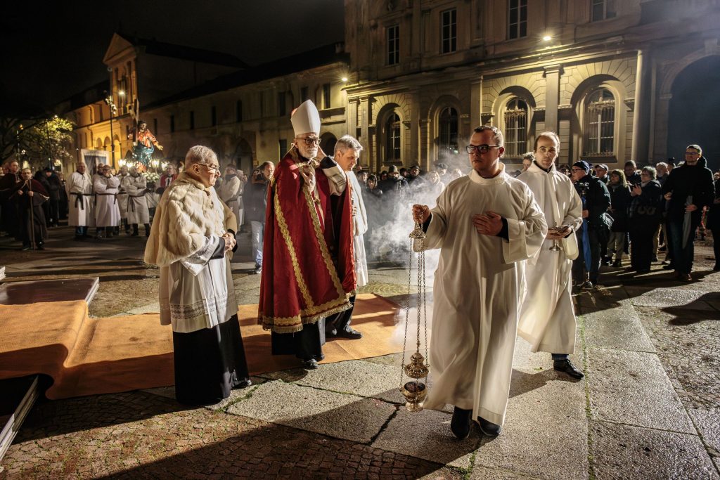 Una per una le “macchine”, portate in spalla da tanti volontari, delle confraternite e dei corpi militari, si sono mosse, seguite dai fedeli lungo le vie del percorso, da via Guala Bicheri, piazza Sant’Eusebio, piazza D’Angennes, via Duomo, via Gioberti, piazza Cavour, con suggestive immagini proiettate sulle facciate dei palazzi che su questa si affacciano, via Galileo Ferraris fino al rientro in Sant’Andrea, dove l’Arcivescovo Mons. Marco Arnolfo, assistito dal Vicario Generale Mons. Stefano Bedello, ha impartito la benedizione finale.