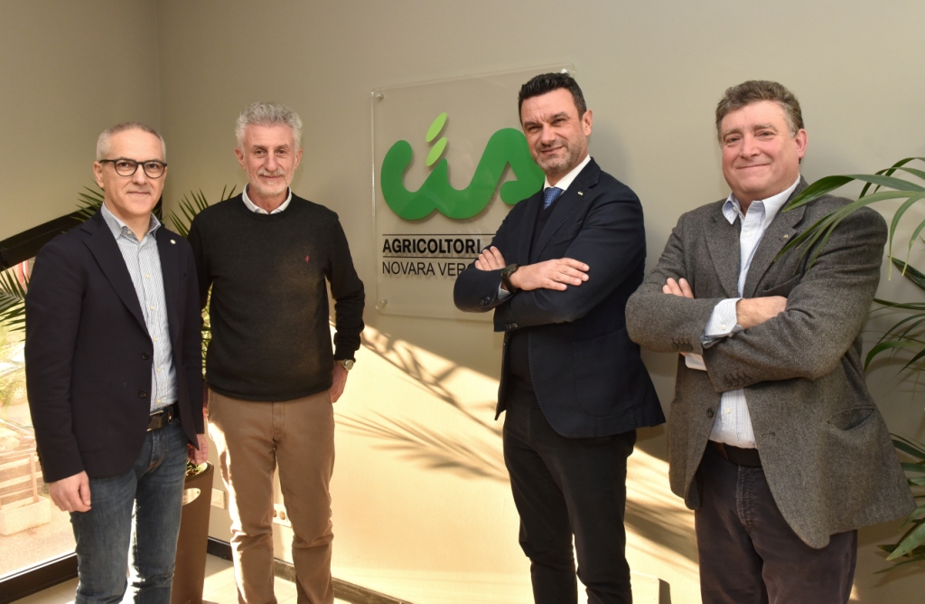 (Foto: Da sx: Maurizio Scaccia – direttore nazionale Cia, Daniele Botti – direttore Cia Novara Vercelli VCO, Cristiano Fini – presidente nazionale Cia, Andrea Padovani – presidente Cia Novara Vercelli VCO)