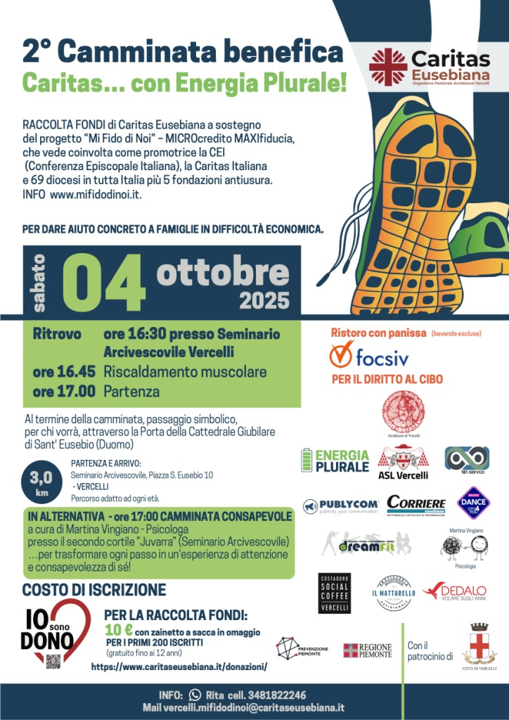 Informazioni per le iscrizioni al numero WhatsApp 3481822246 (Rita di Publycom) che cura l’organizzazione dell’evento, oppure scrivendo a vercelli.mifidodinoi@caritaseusebiana.it.