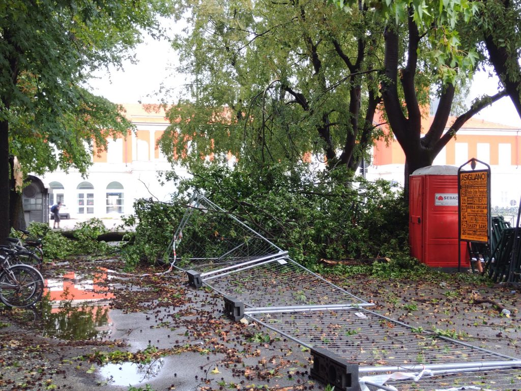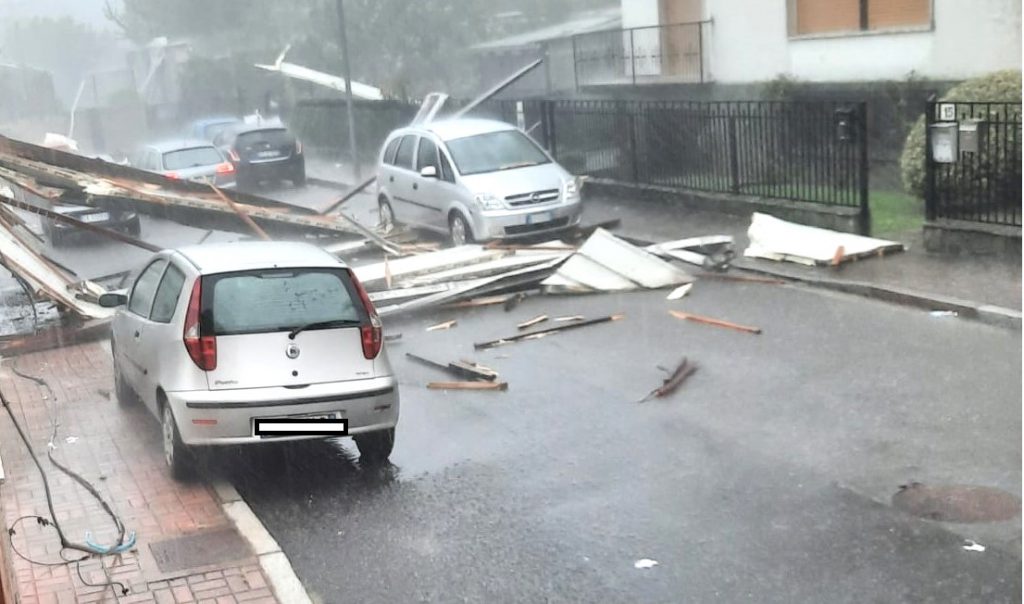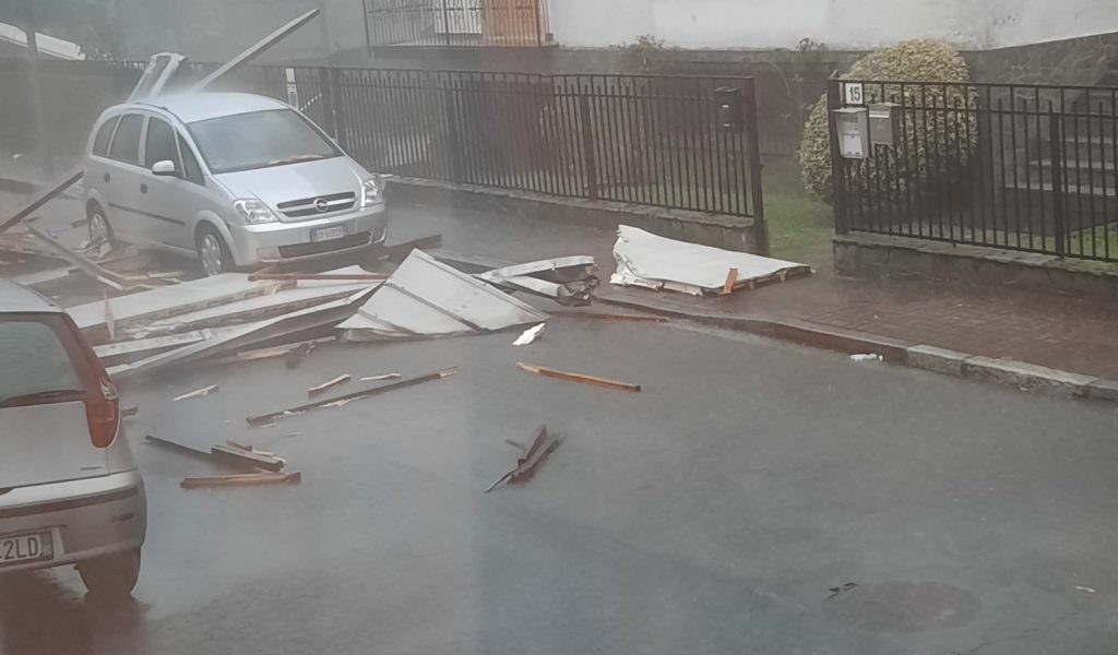 Un quarto d’ora di pioggia battente, grandine, raffiche di vento.