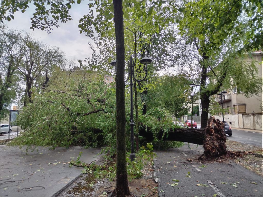 E’ soprattutto Viale Garibaldi a fare constatare ben quattro esemplari arborei rovinati al suolo, divelti dalla forza del vento.