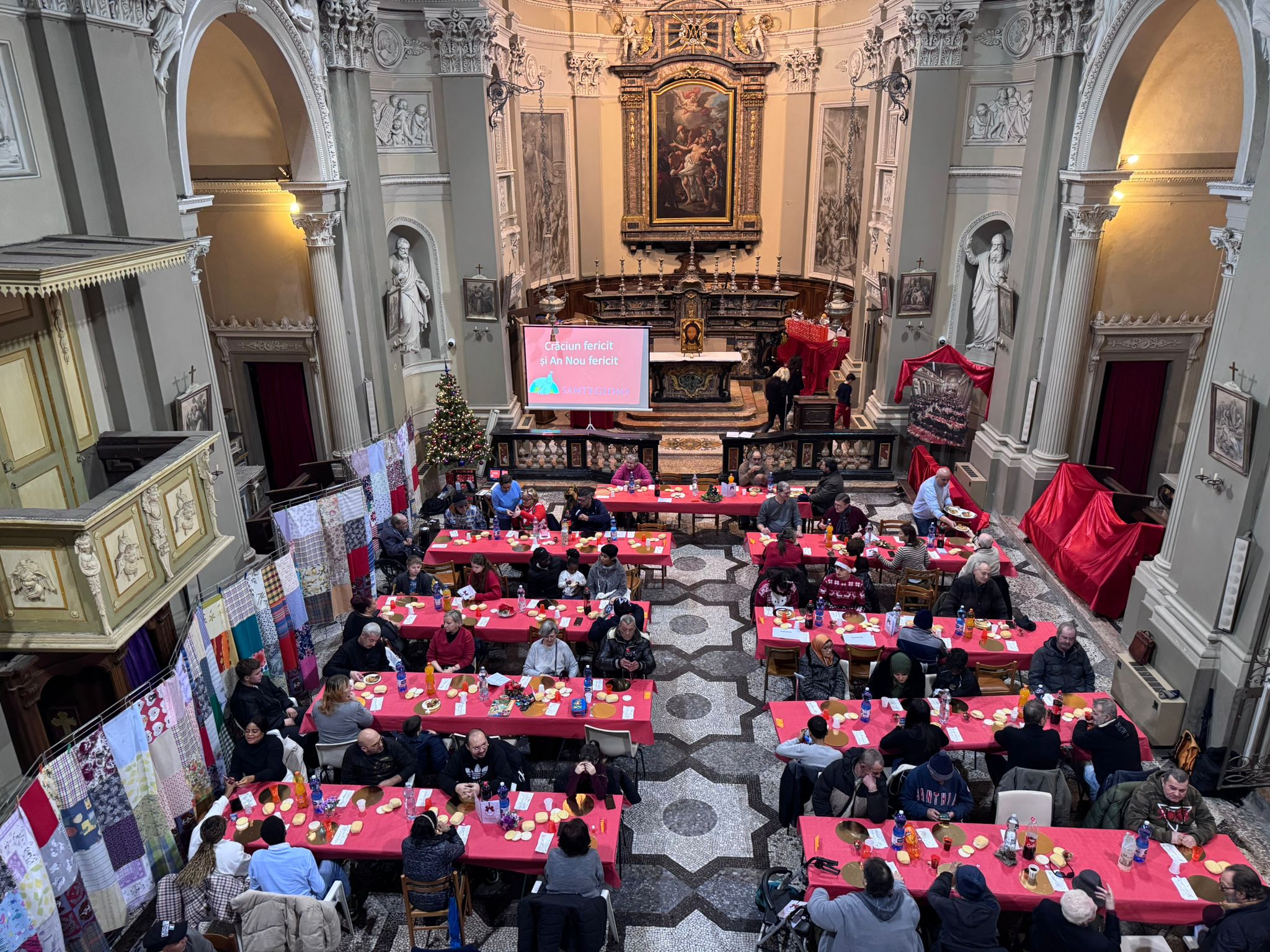 La tovaglia, di indiscutibile valore simbolico ed educativo, non poteva rimanere nel cassetto: così è nata la proposta di utilizzare la tovaglia per il pranzo di Natale che la Comunità di Sant’Egidio ha organizzato nella chiesa di San Lorenzo.