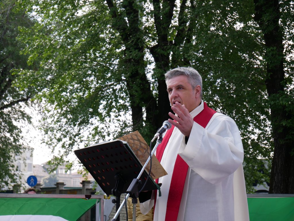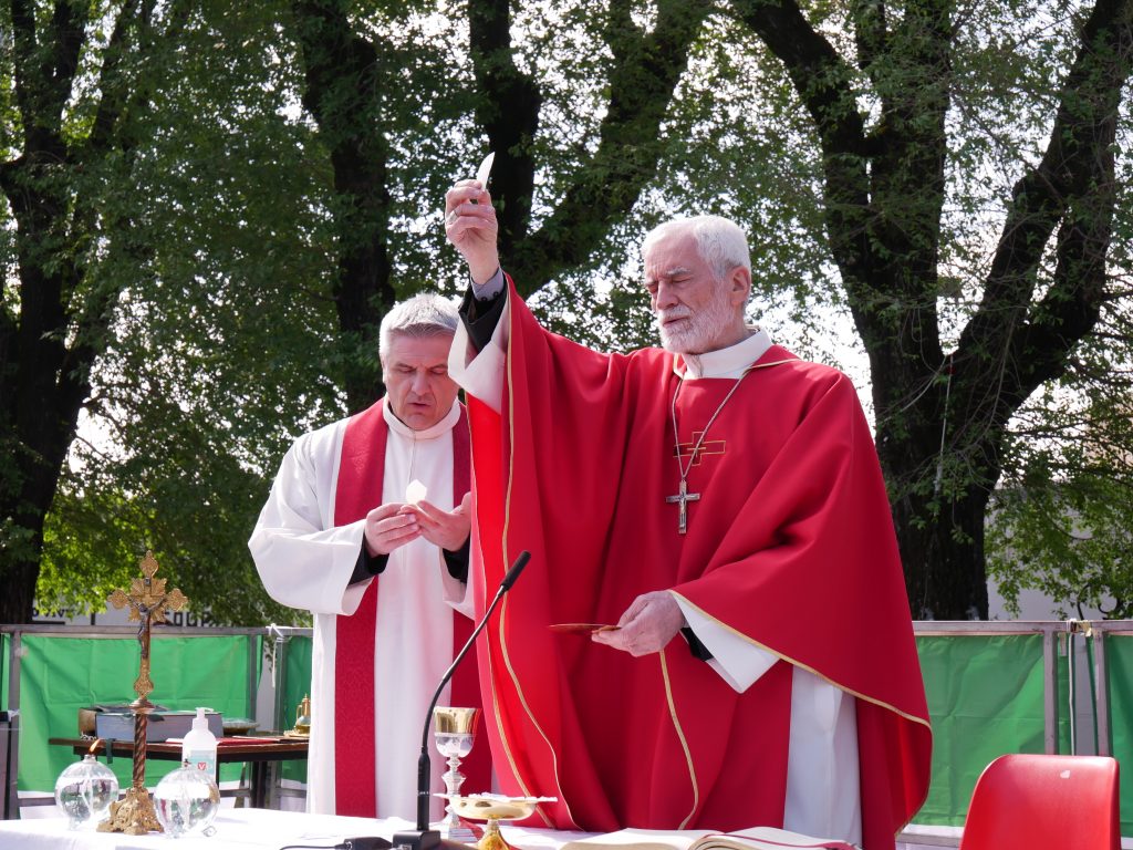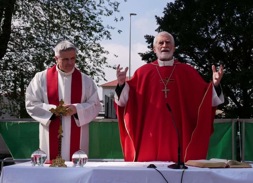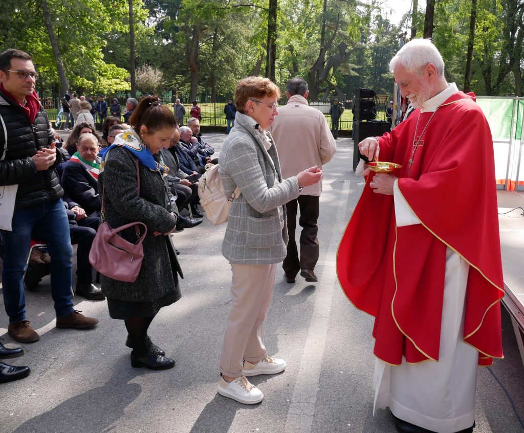 Il video che abbiamo messo a repertorio, oltre a qualche scampolo della mattinata, offre integrali l’omelia dettata dall’Arcivescovo di Vercelli, Mons. Marco Arnolfo (concelebrante il Vicario Generale, Mons. Stefano Bedello), nel corso della S.Messa in Piazza Camana (le Letture sono state: 1 Pt 5, 5-14; Sal 88; Mc 16, 15-20.) che, pur essendo quelle già previste dal Lezionario del giorno (cioè, non sono state scelte apposta, sono quelle che la Chiesa propone) parevano provvidenzialmente idonee a suggerire pensieri sui quali meditare proprio in questo giorno di memoria, soprattutto con il richiamo a rivestirsi di umiltà, gli uni verso gli altri, primo passo per abbandonare davvero odio e divisioni.
