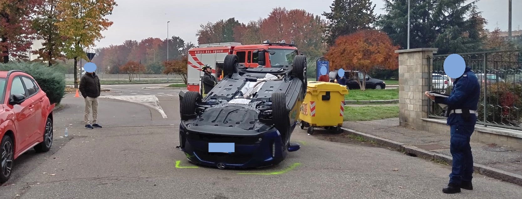 La cronaca di oggi, 12 novembre 2022, si inizia con la notizia di questo incidente stradale “autonomo” che, cioè, vede coinvolta una sola vettura: la Toyota che si vede, ribaltata, nella fotografia.