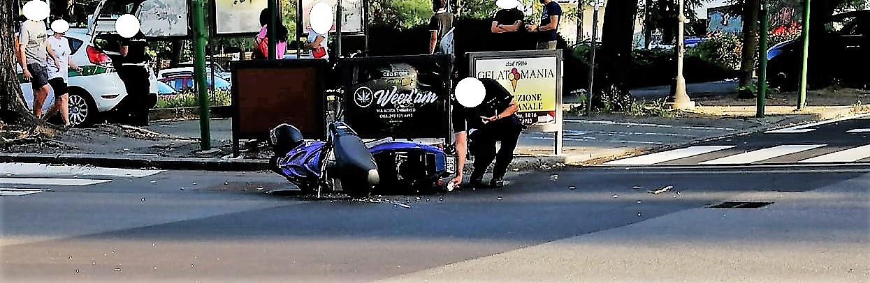 Per cause che sono al vaglio della Polizia Municipale di Vercelli, un’utilitaria è entrata in collisione con lo scooter che si vede nelle foto, condotto da un giovane.