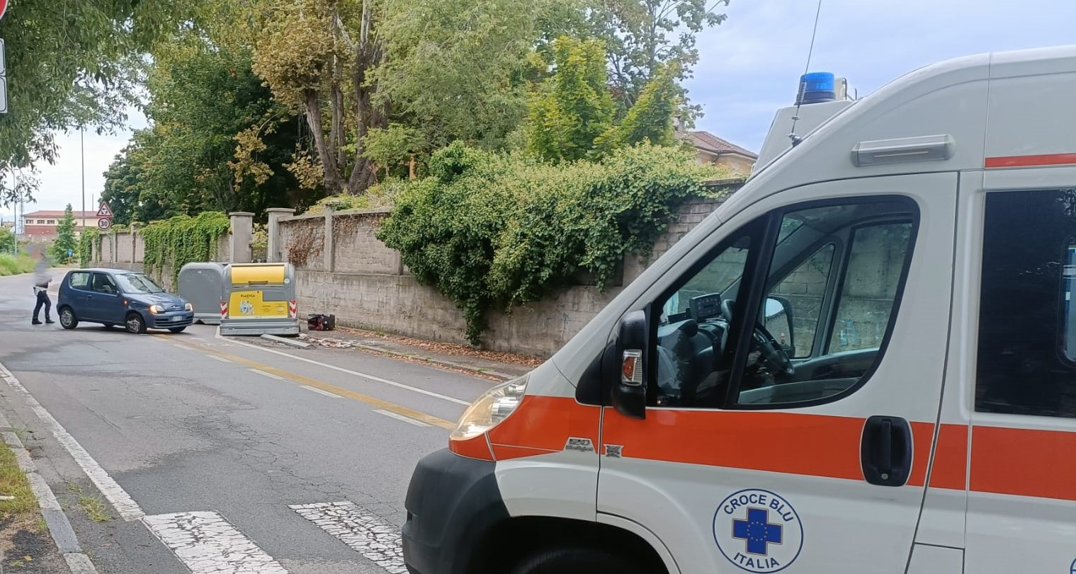 VERCELLI VIALE TORRICELLI - Utilitaria finisce contro i cassoni della raccolta plastica e vetro - Incidente autonomo - Fuori pericolo la persona conducente - Traffico bloccato - Preclusa anche questa via d'uscita dalla città -