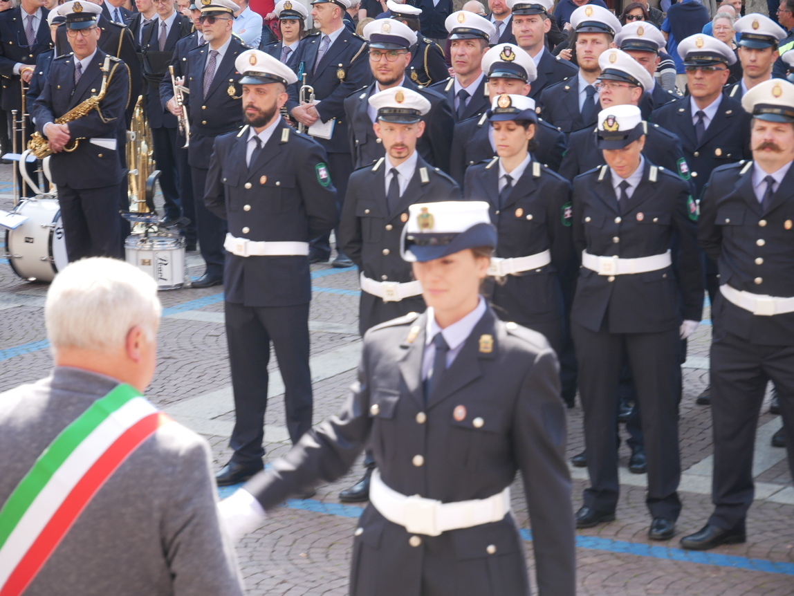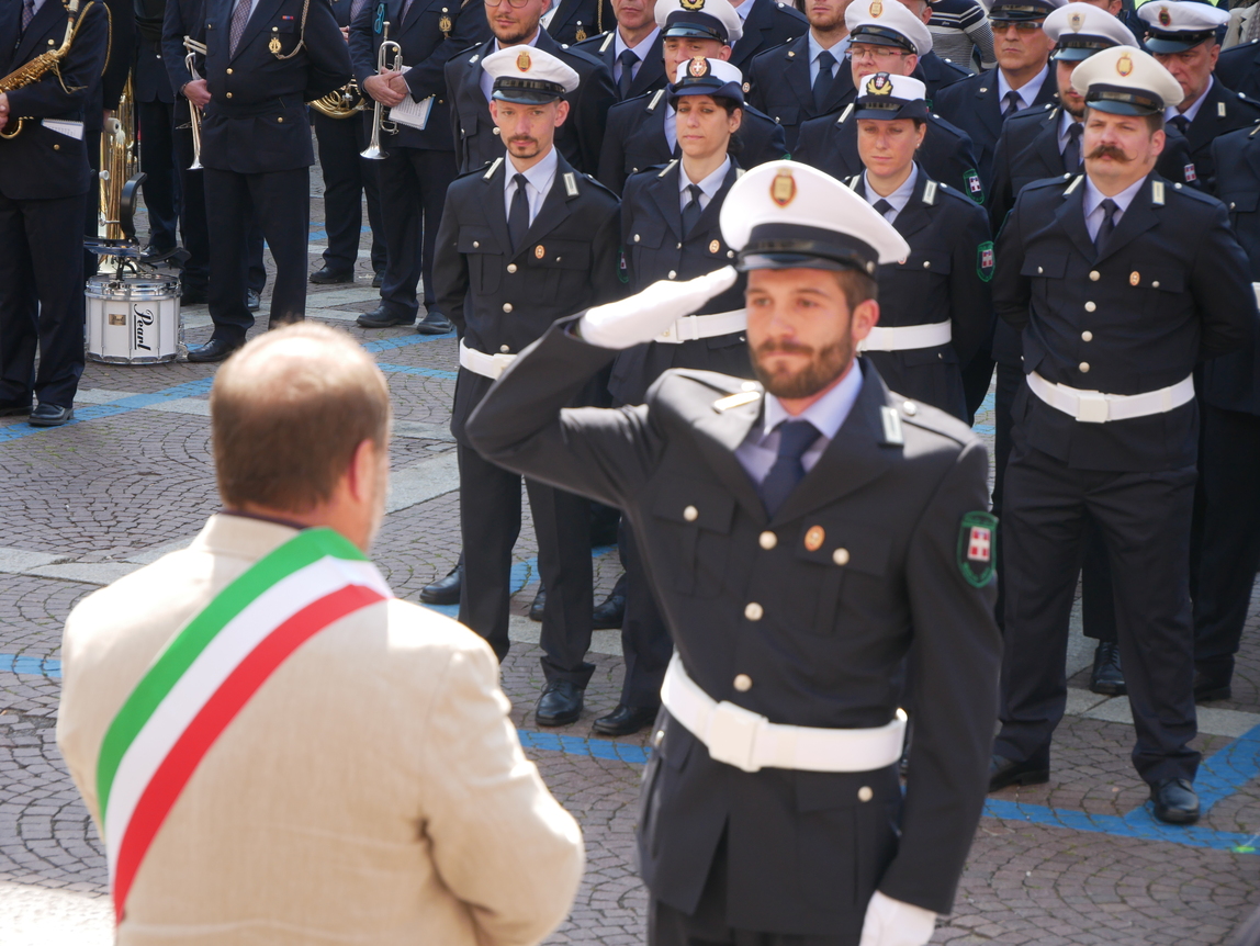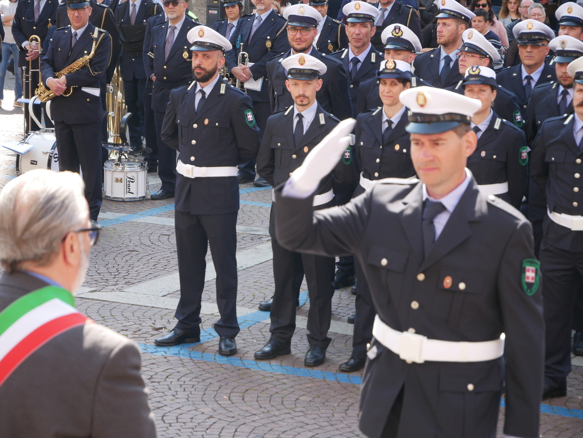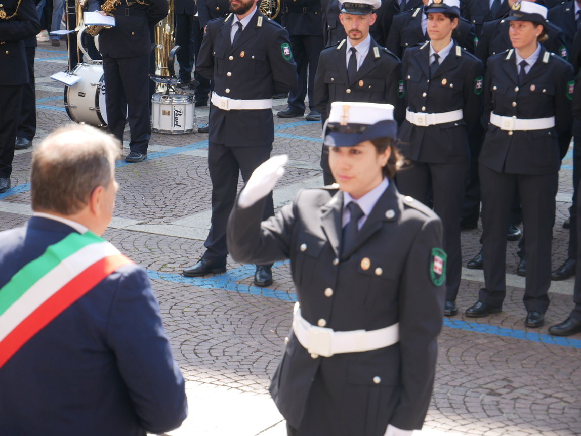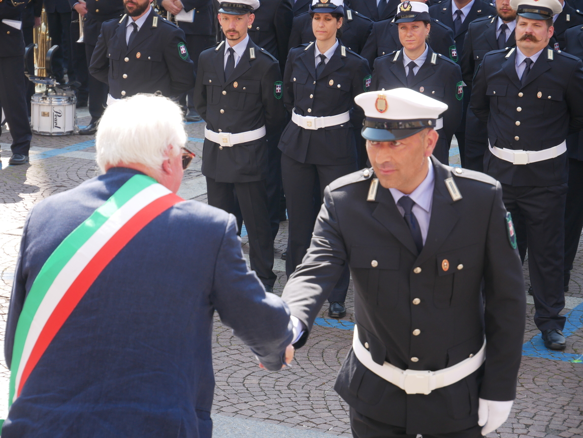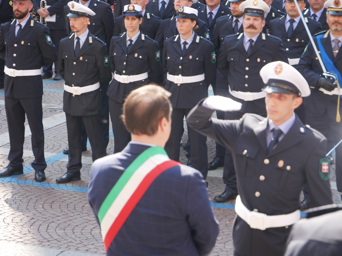 Un momento bello, si diceva: Piazza Zumaglini popolata dei 60 Vigili che hanno ricevuto la “placca”, il distintivo di Agente, dalle mani dei rappresentanti delle rispettive Amministrazioni pubbliche presso cui presteranno servizio.