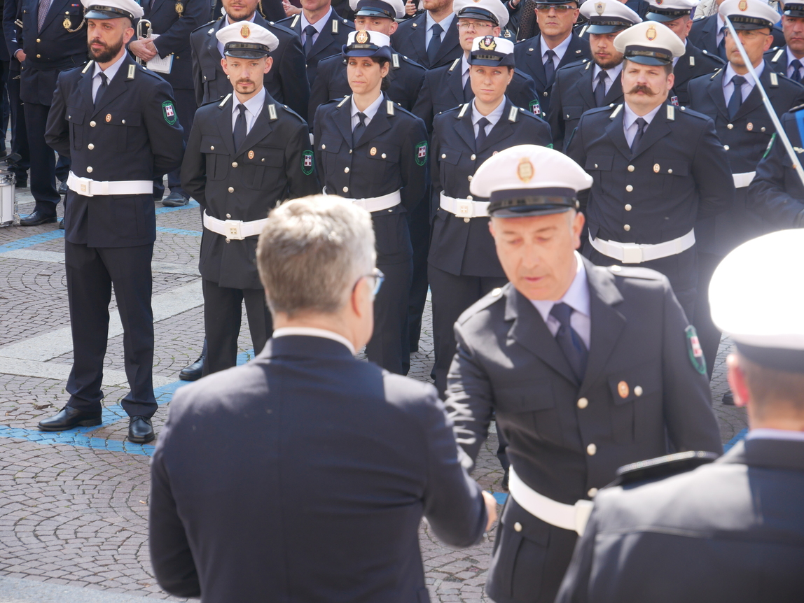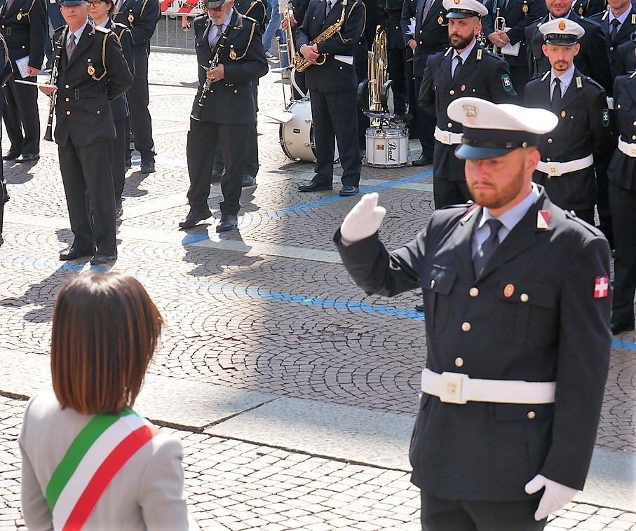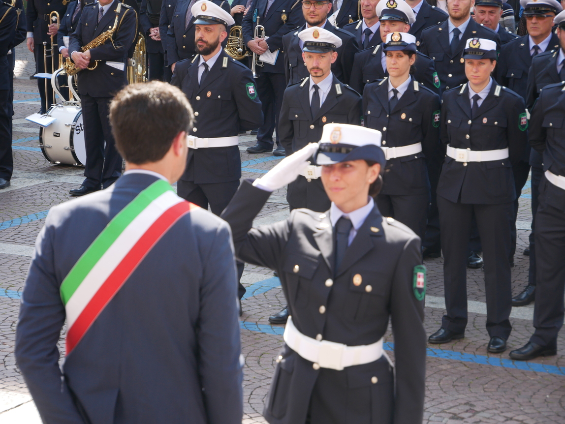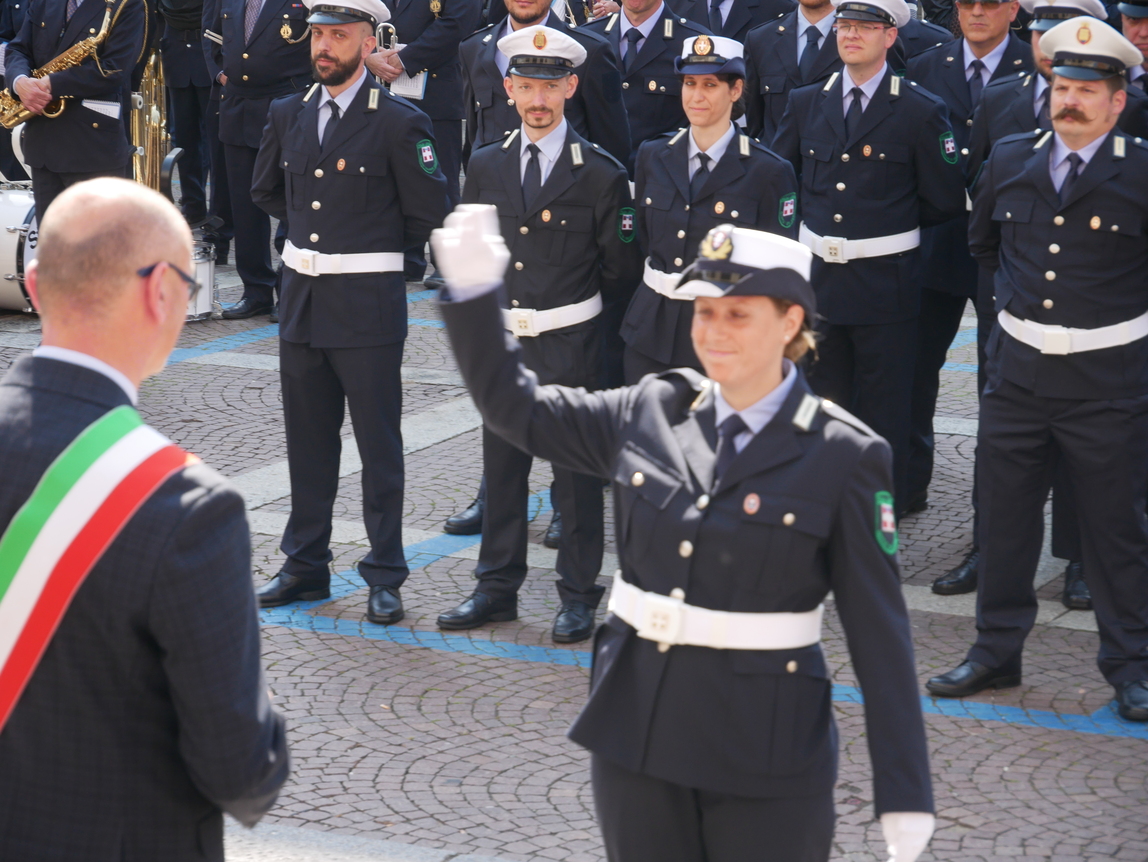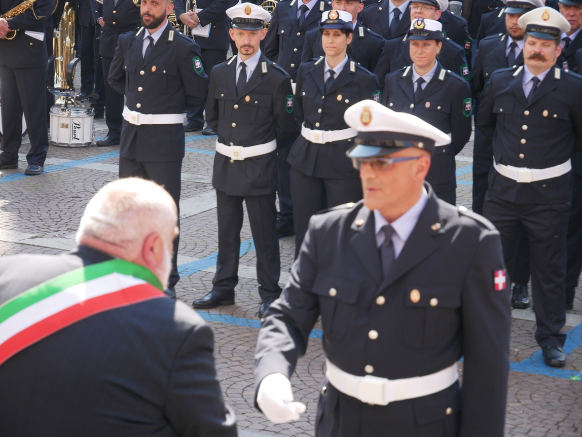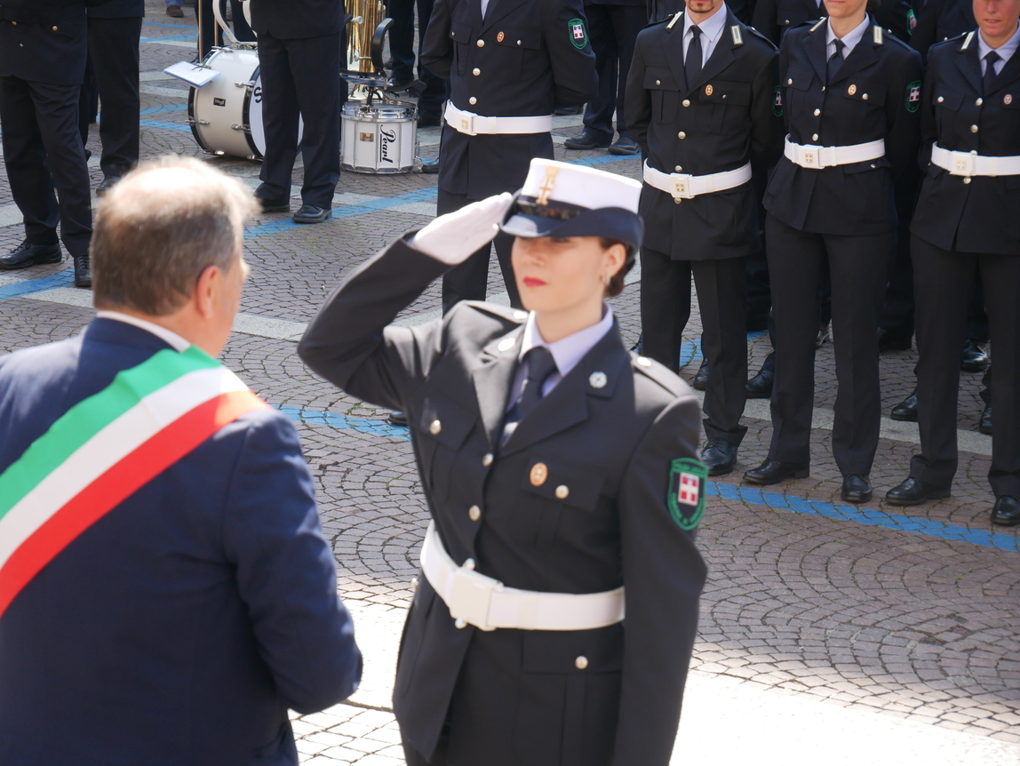 Un momento bello, si diceva: Piazza Zumaglini popolata dei 60 Vigili che hanno ricevuto la “placca”, il distintivo di Agente, dalle mani dei rappresentanti delle rispettive Amministrazioni pubbliche presso cui presteranno servizio.