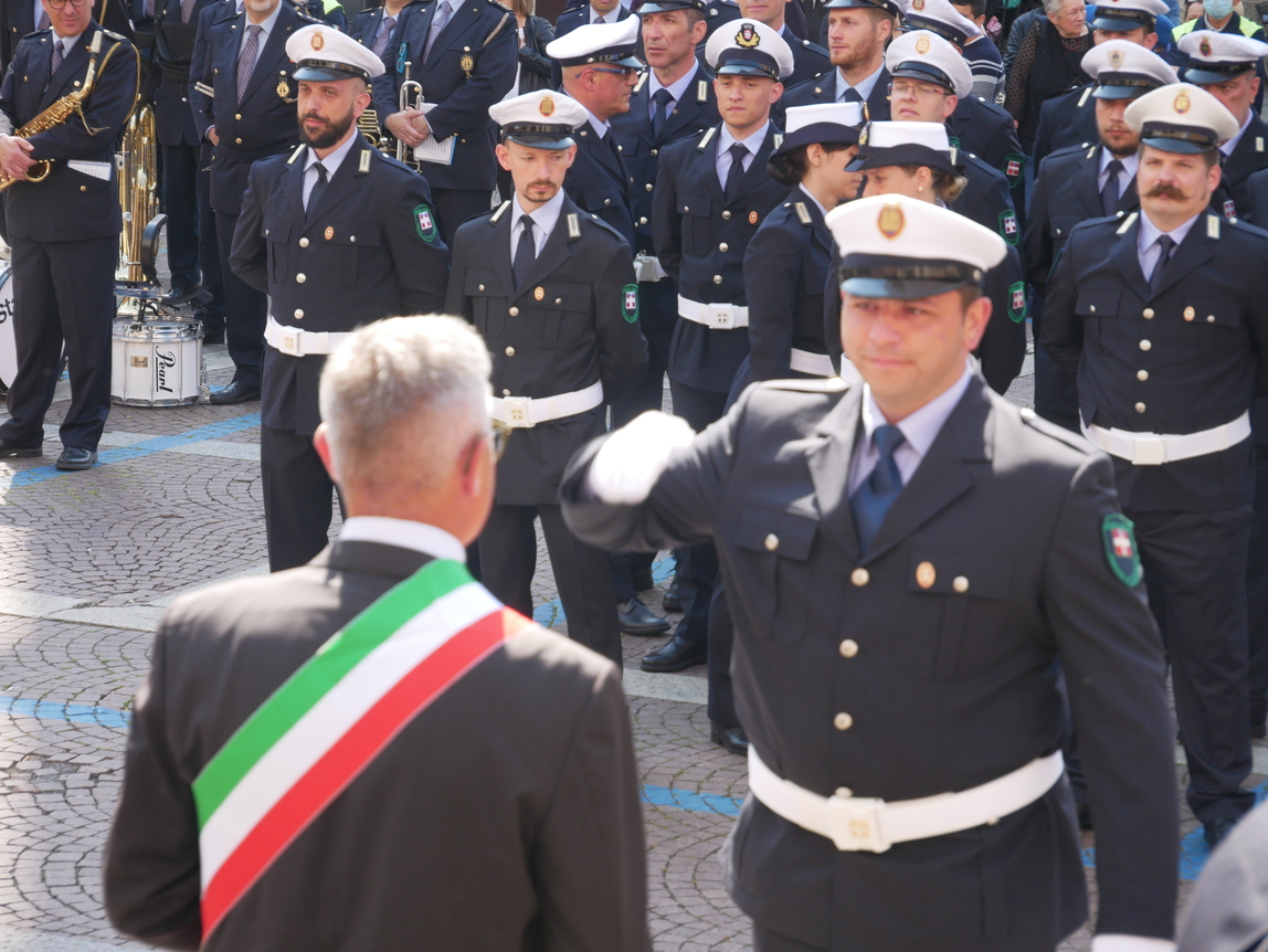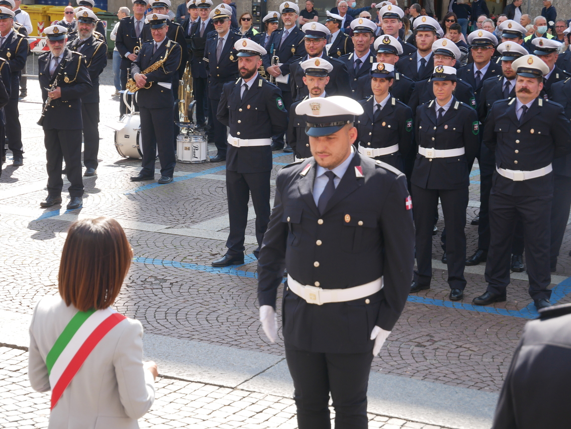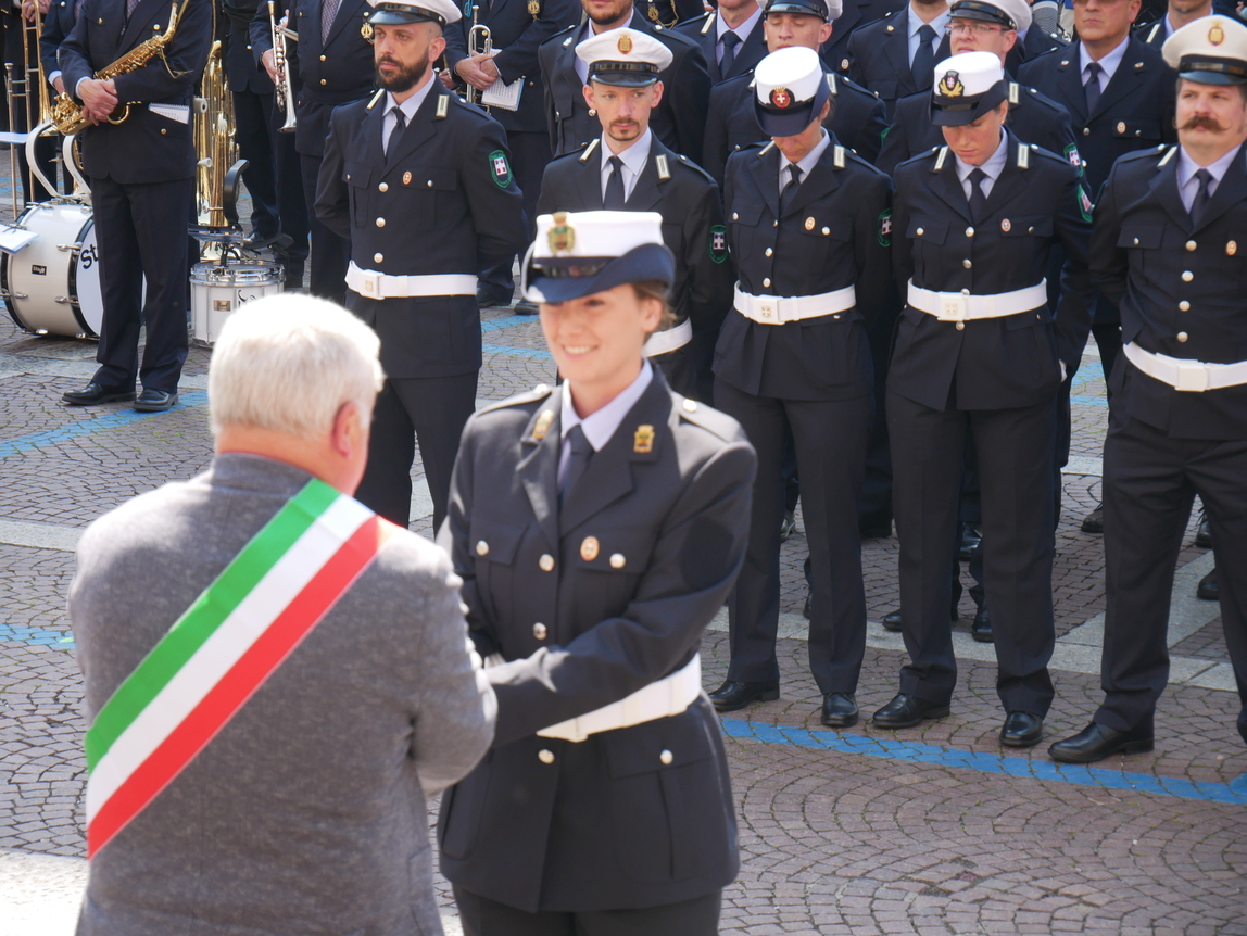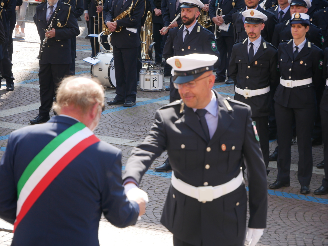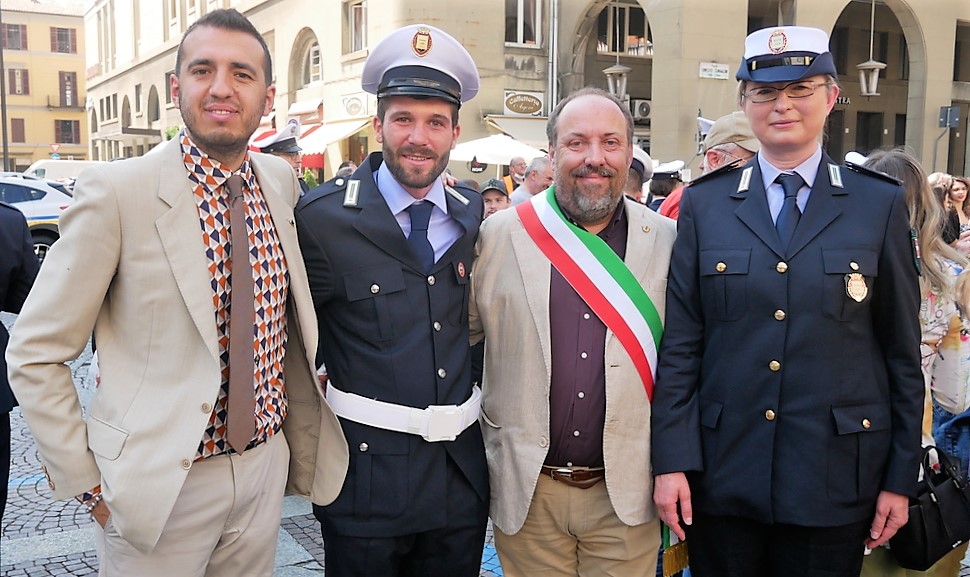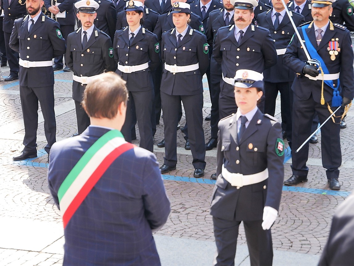 Un momento bello, si diceva: Piazza Zumaglini popolata dei 60 Vigili che hanno ricevuto la “placca”, il distintivo di Agente, dalle mani dei rappresentanti delle rispettive Amministrazioni pubbliche presso cui presteranno servizio.