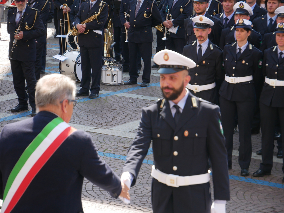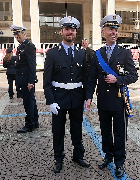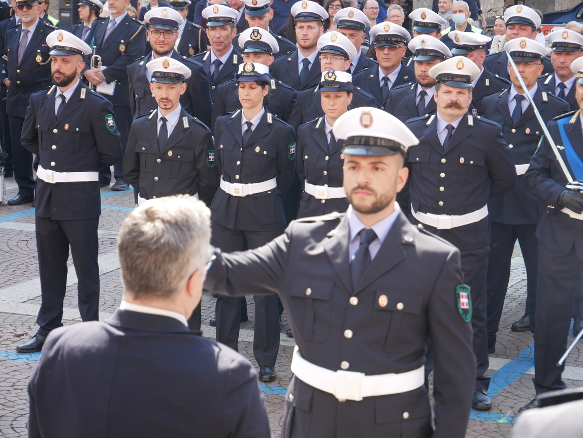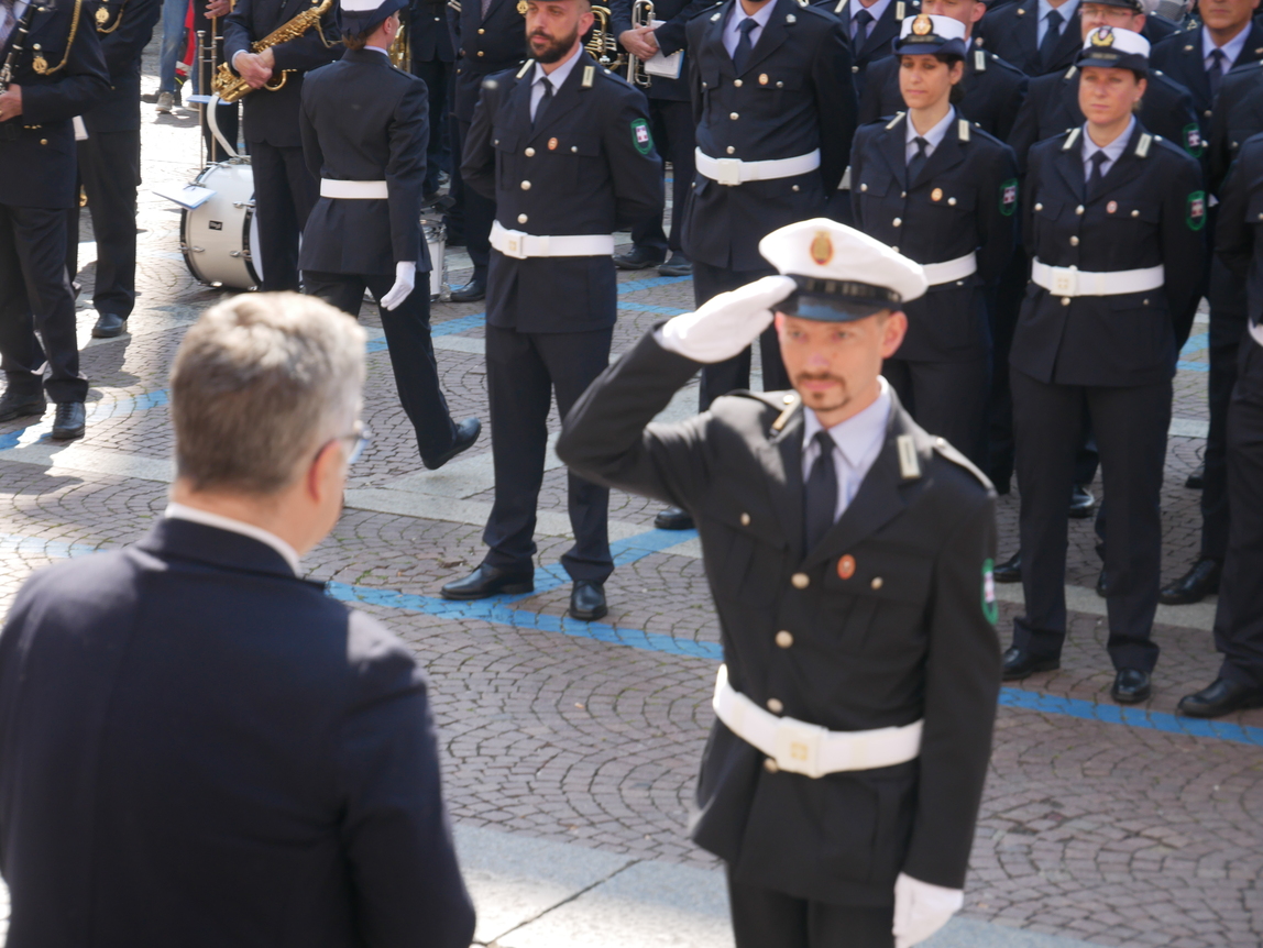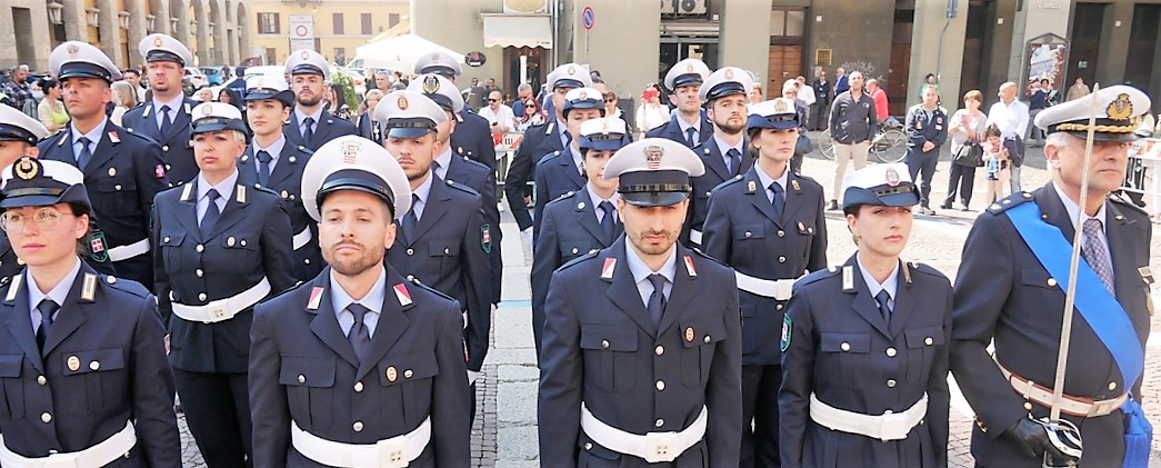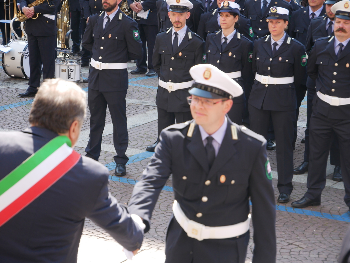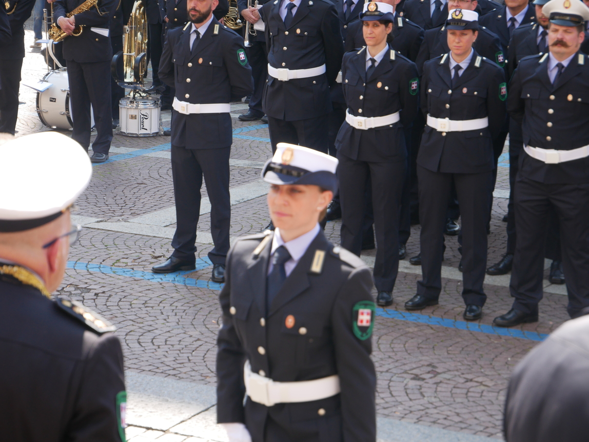 Un momento bello, si diceva: Piazza Zumaglini popolata dei 60 Vigili che hanno ricevuto la “placca”, il distintivo di Agente, dalle mani dei rappresentanti delle rispettive Amministrazioni pubbliche presso cui presteranno servizio.