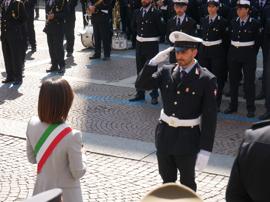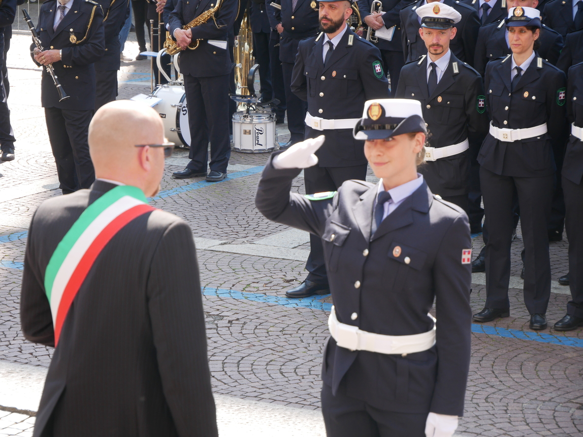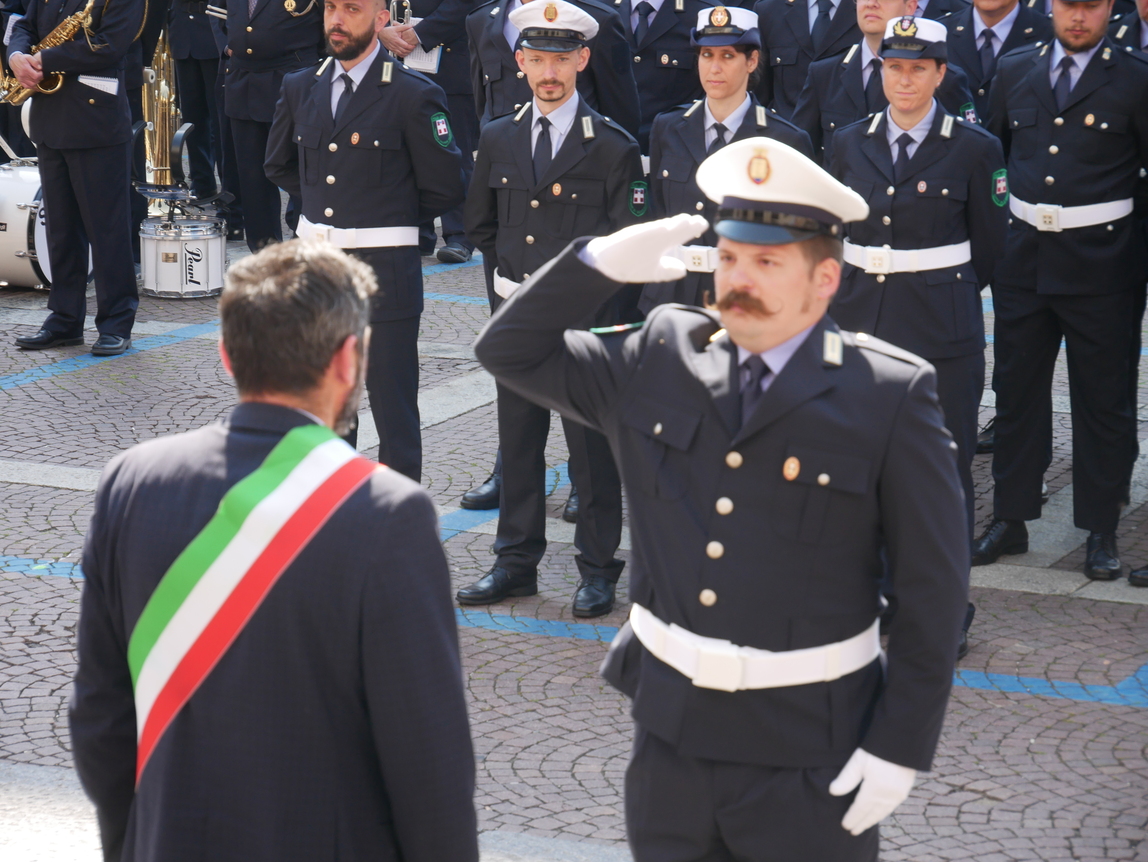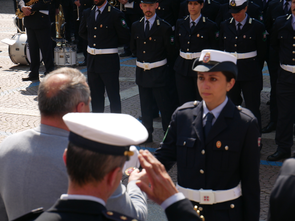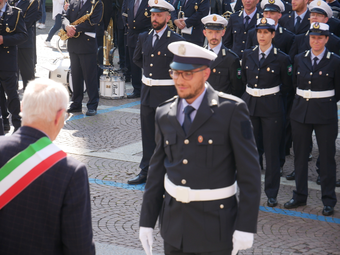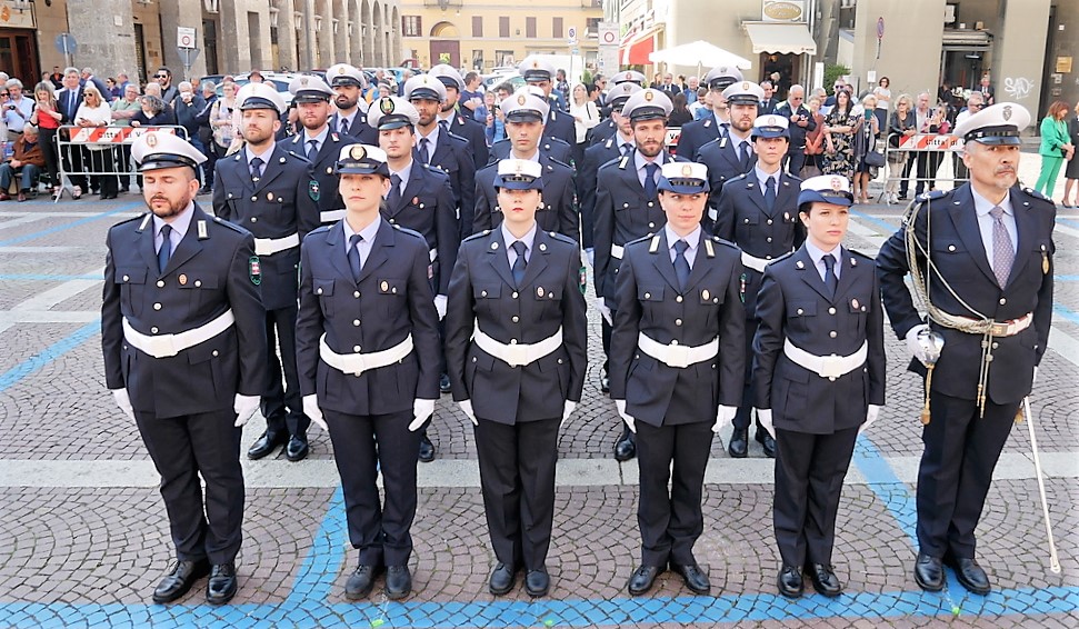 Un momento bello, si diceva: Piazza Zumaglini popolata dei 60 Vigili che hanno ricevuto la “placca”, il distintivo di Agente, dalle mani dei rappresentanti delle rispettive Amministrazioni pubbliche presso cui presteranno servizio.