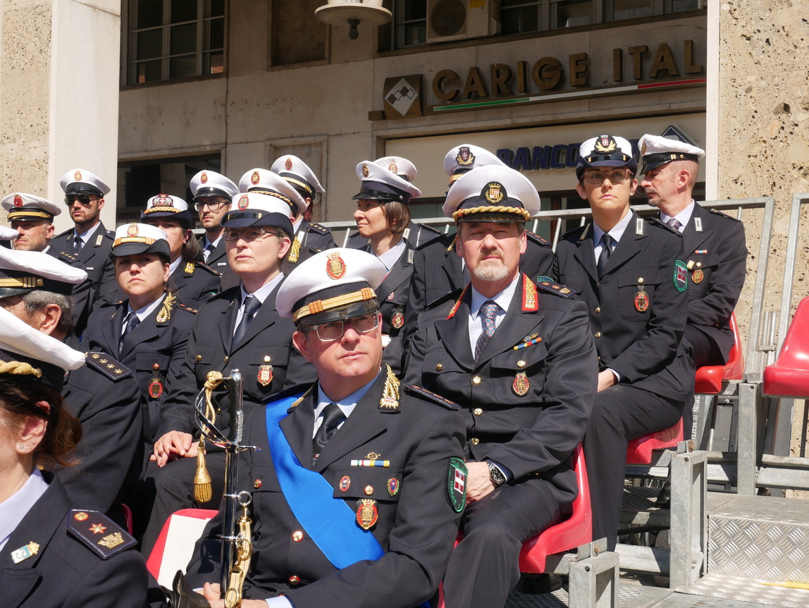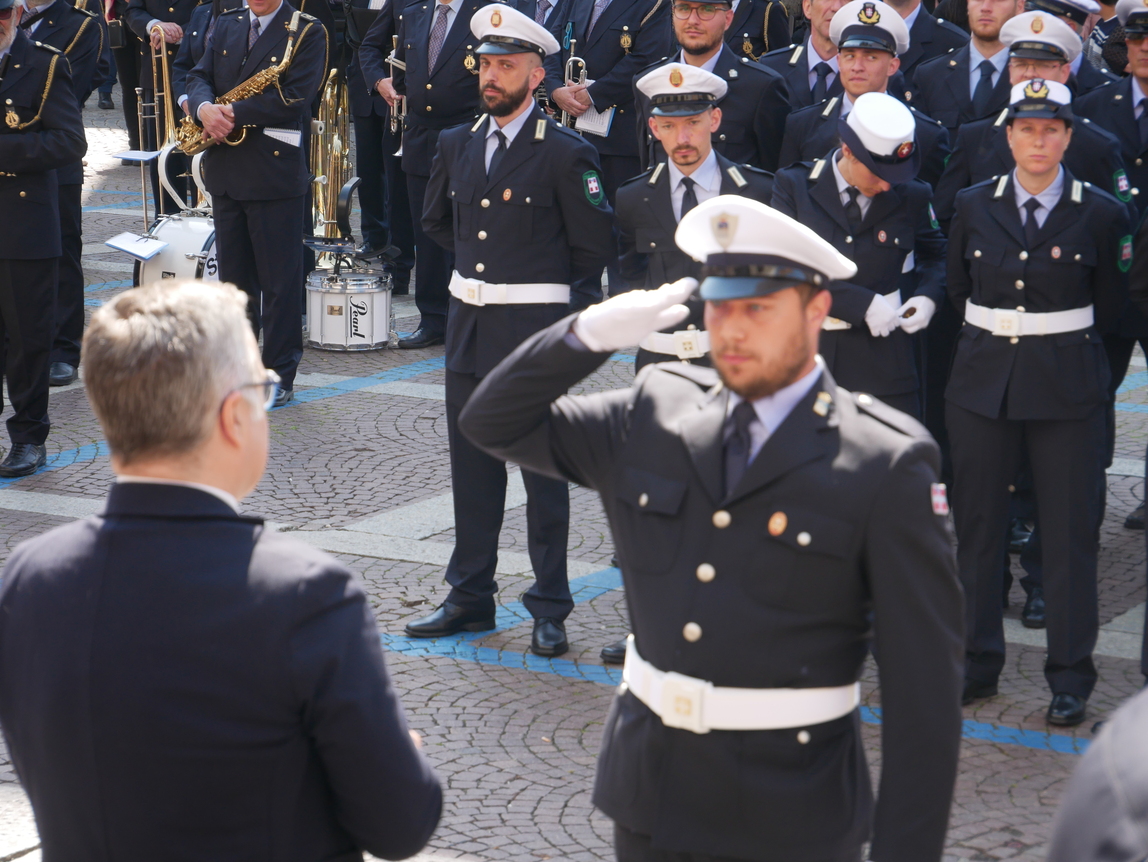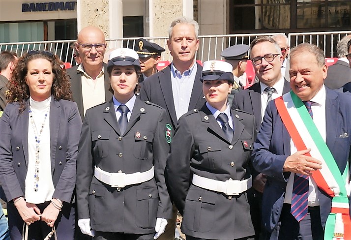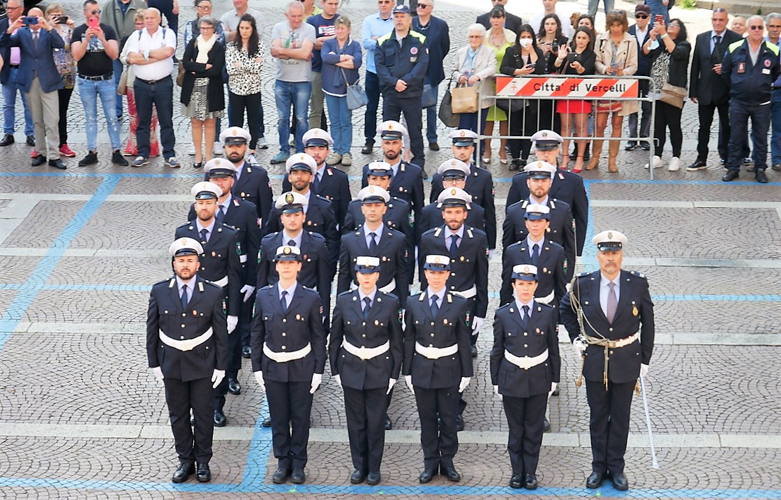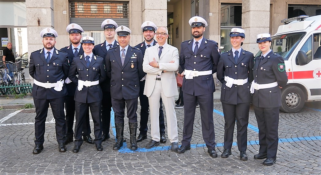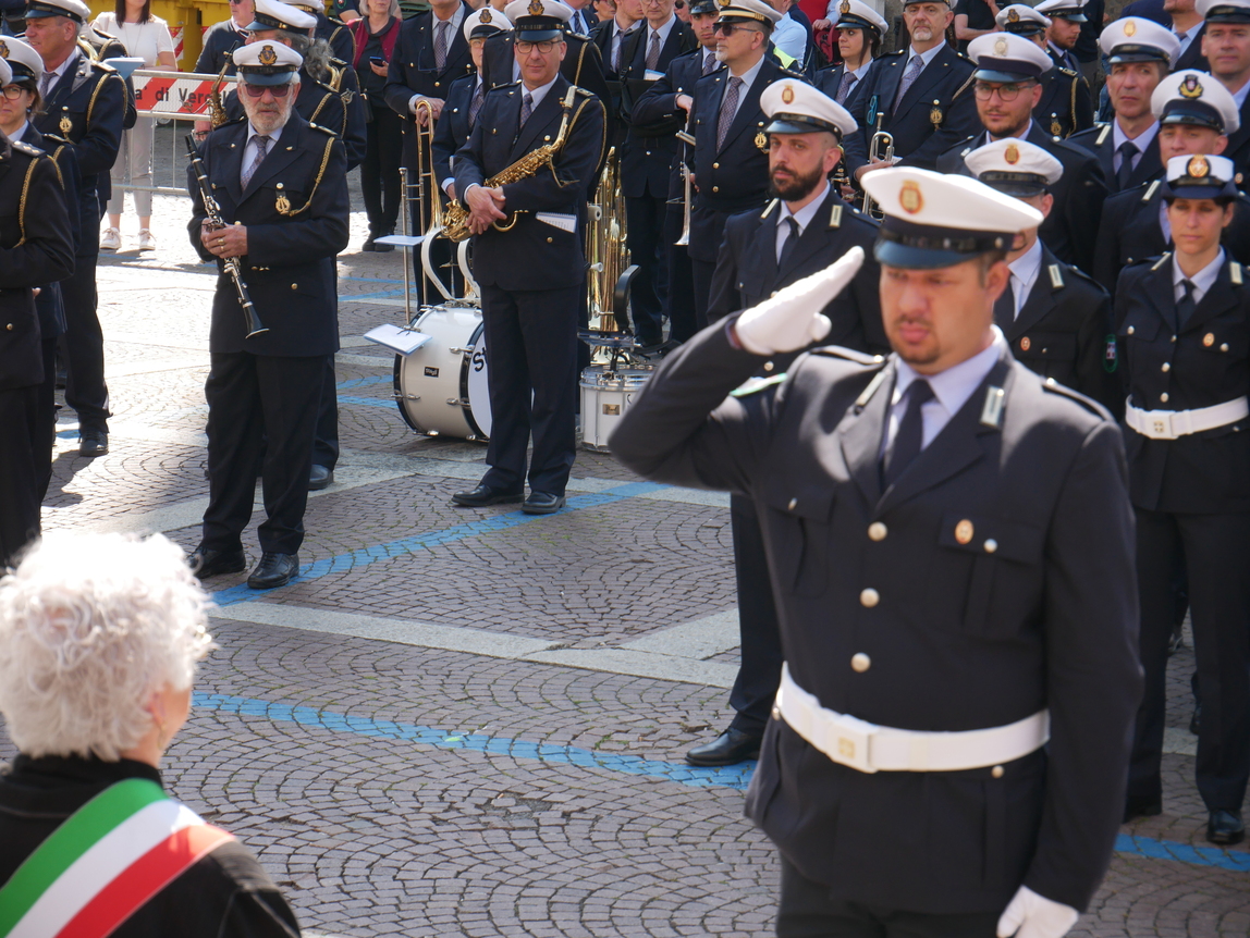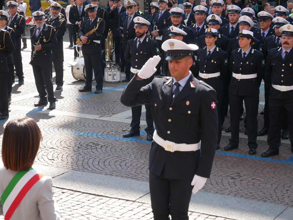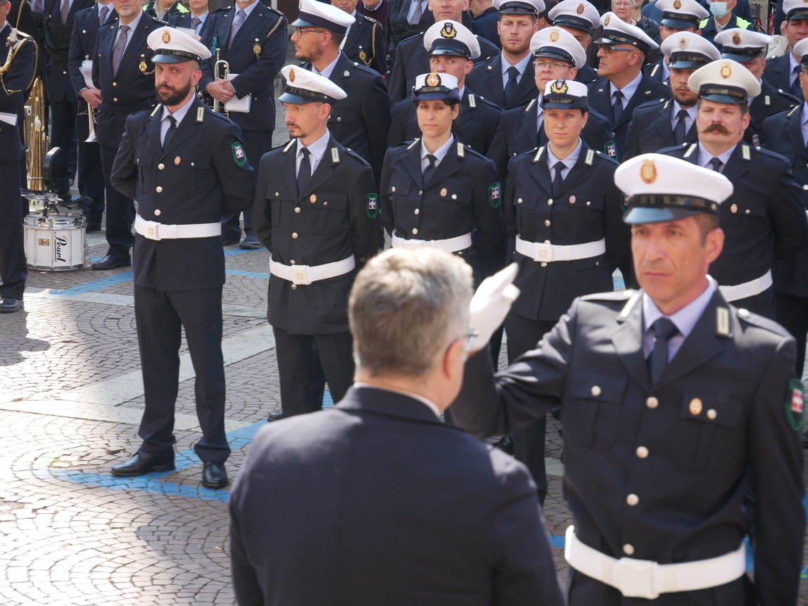 Un momento bello, si diceva: Piazza Zumaglini popolata dei 60 Vigili che hanno ricevuto la “placca”, il distintivo di Agente, dalle mani dei rappresentanti delle rispettive Amministrazioni pubbliche presso cui presteranno servizio.