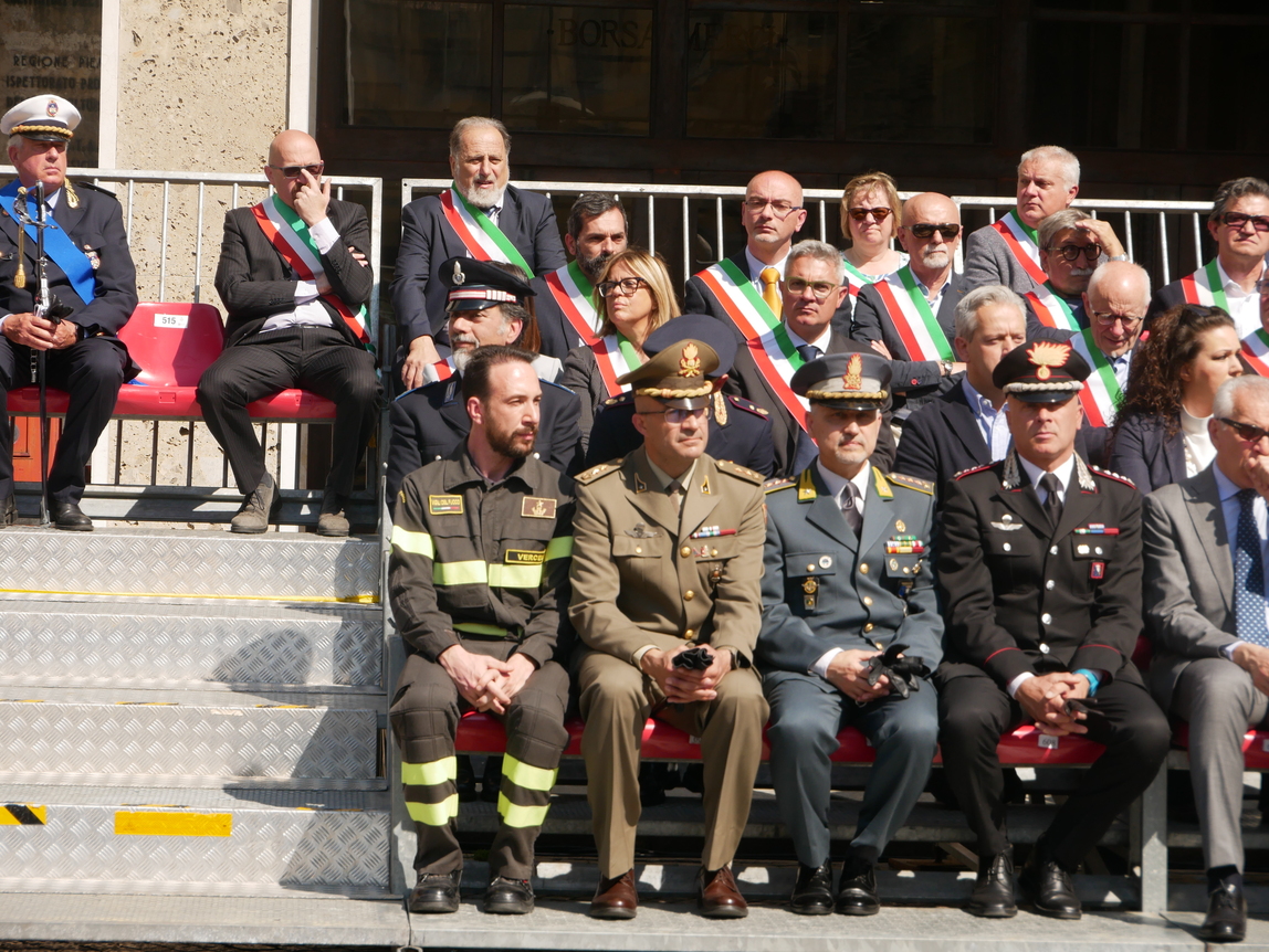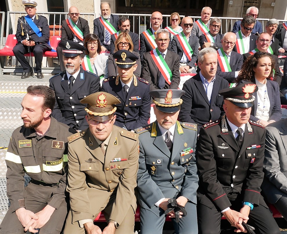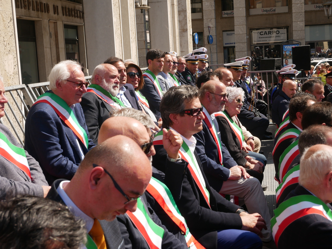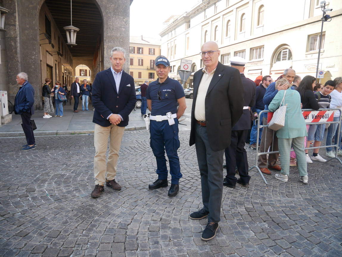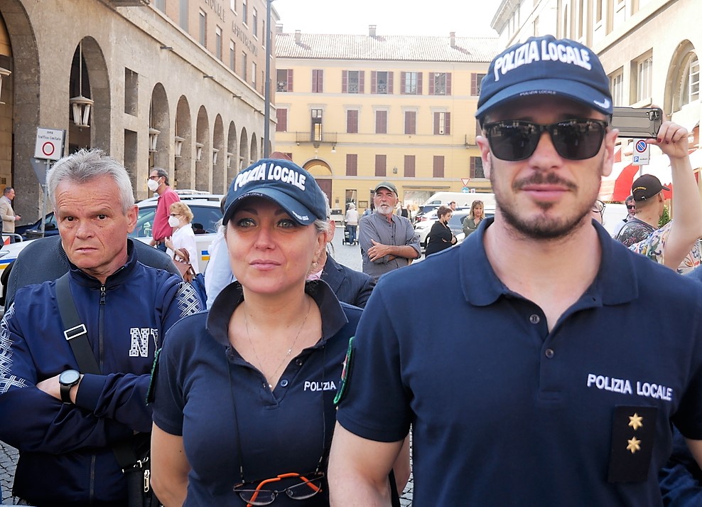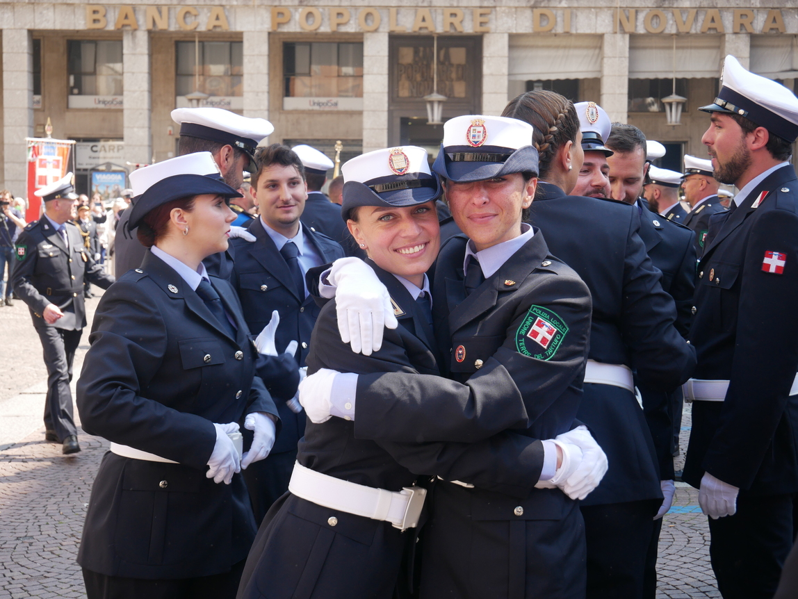 Un momento bello, si diceva: Piazza Zumaglini popolata dei 60 Vigili che hanno ricevuto la “placca”, il distintivo di Agente, dalle mani dei rappresentanti delle rispettive Amministrazioni pubbliche presso cui presteranno servizio.