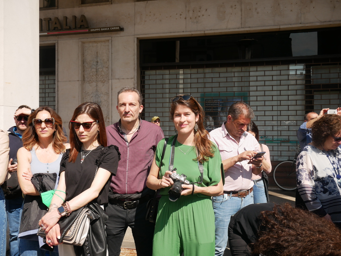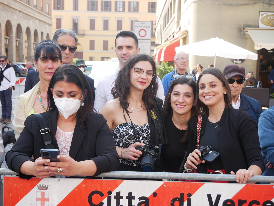 Ai margini della piazza, ad accompagnarli, tanti amici, parenti, fidanzati e fidanzate.