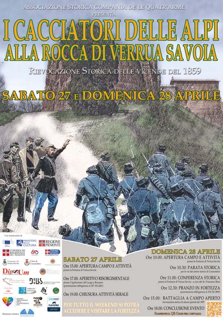 Giovedì 28 marzo presso la Fortezza di Verrua Savoia si è tenuta la conferenza stampa di presentazione del progetto “I Cacciatori delle Alpi alla Rocca di Verrua”, iniziativa ideata e promossa dall’Associazione Storica Compania de le Quatr’Arme odv, giunta alla terza edizione annuale, in programma a fine aprile.