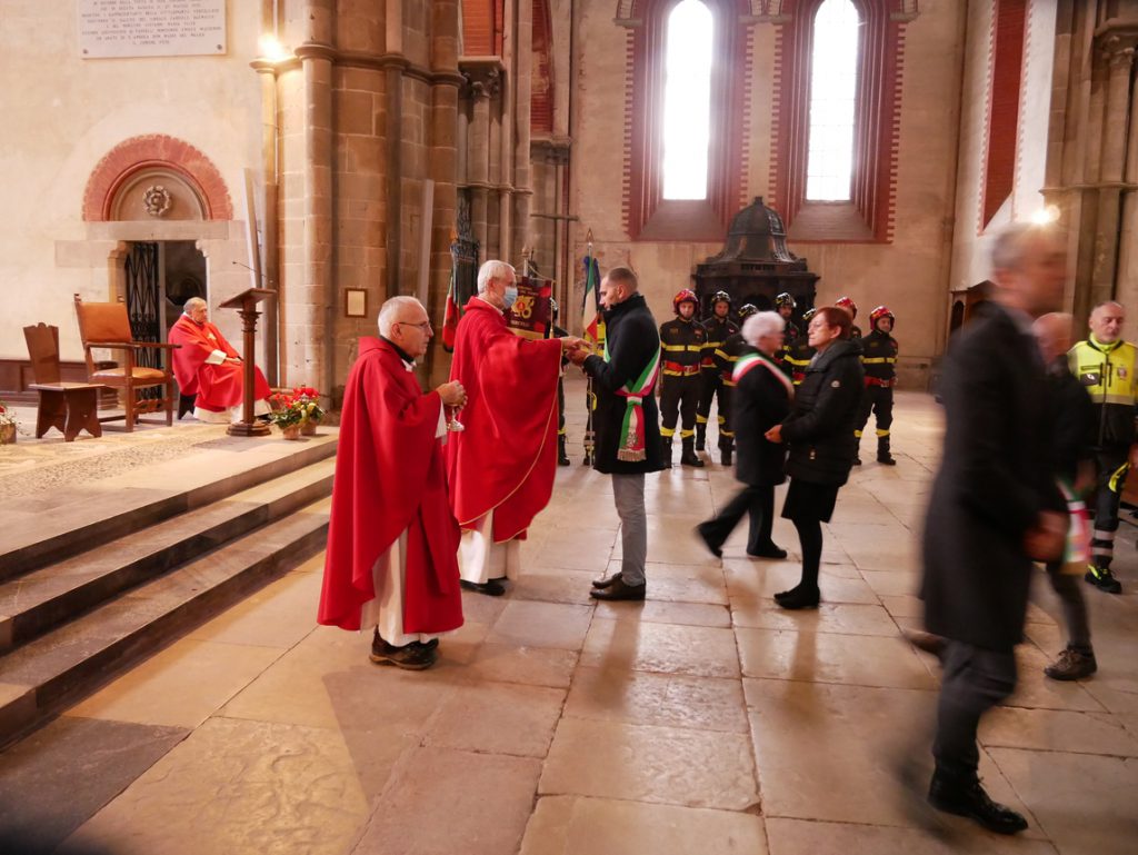 L’Eucarestia è stata presieduta dall’Arcivescovo di Vercelli, Mons. Marco Arnolfo, concelebranti il Rettore della Basilica, Mons. Mario Allolio e Don Massimo Bracchi che, Parroco di S. Maria Maddalena è altresì il Cappellano del Comando Provinciale.
