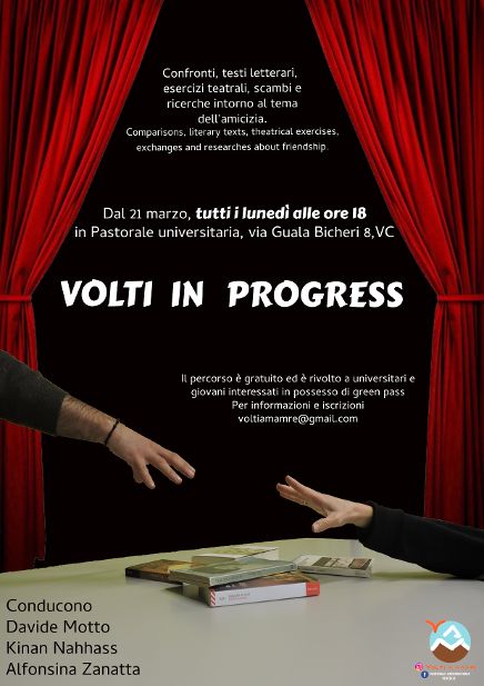 Confronti, testi letterari, esercizi teatrali, scambi e ricerche intorno al tema dell’Amicizia che si terranno ogni lunedì alle ore 18, a partire dal 21 marzo presso la sede della Pastorale universitaria, via Guala Bicheri 8.